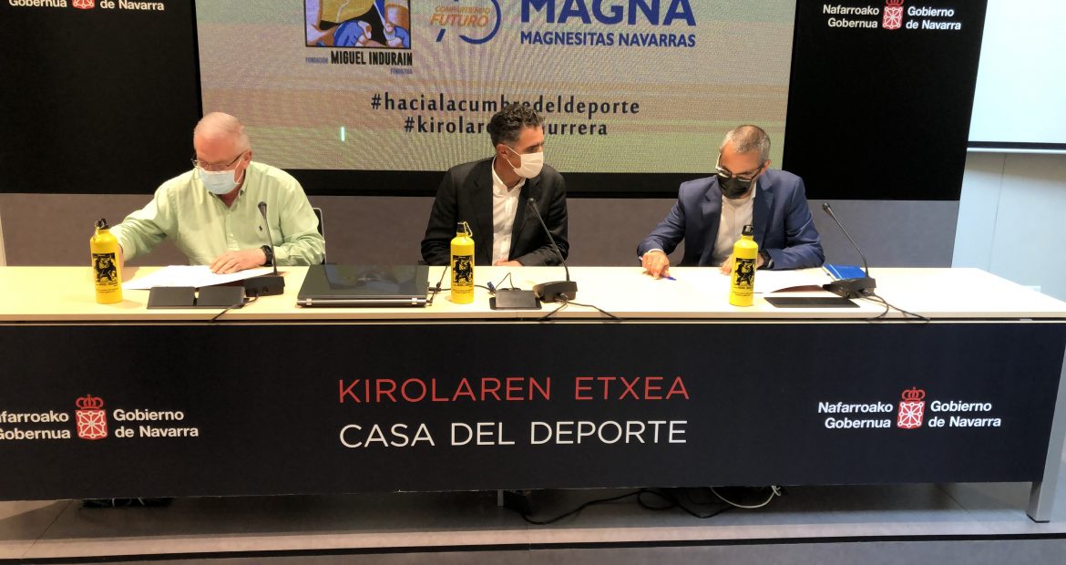 El presidente de honor de la FMIF Miguel Induráin, el presidente del Comité Ejecutivo, Miguel Ángel Pozueta, y el...